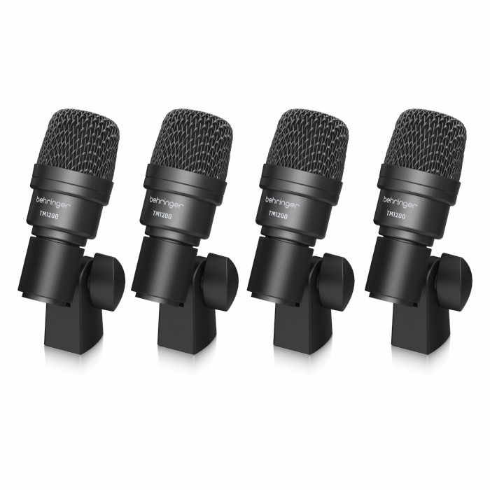 The TM1200 medium diaphragm dynamic capsules are especially tuned for toms and snares. Mount clamps onto each mic then attach each of them onto the hoop of a tom or snare drum. The angle and distance from mic to drumhead is adjustable. Position each toward the center of the drumhead for best results.